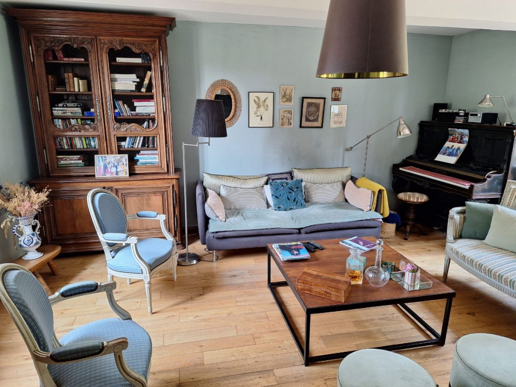 - Étage : spacieuse chambre parentale traversante avec boiseries, parquet et cheminée d'ornement (env. 20 m²), une chambre avec salle d'eau privative (douche, lavabo, WC), un couloir avec rangements intégrés, une salle de bains indépendante, une chambre d'enfants en enfilade avec une chambre d'adultes.