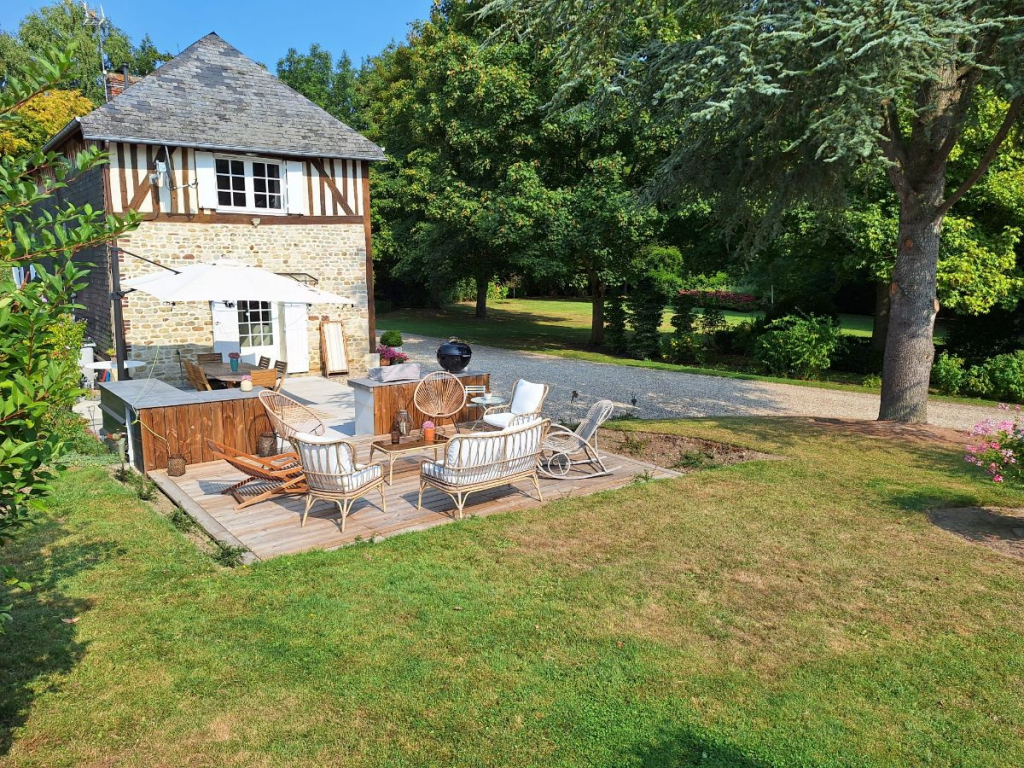 La propriété est complétée par un ensemble de dépendances typiquement normandes : ancien pressoir de 150 m² au sol, avec charreterie et sa double roue d'origine, ancienne étable, deux bâtiments à usage de garages et stockage.